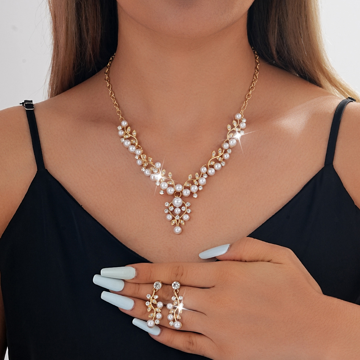 Cross-Border New Light Luxury Retro Temperament Pearl Necklace Earrings Two-Piece Bridal Clavicle Chain Jewelry Set Wholesale