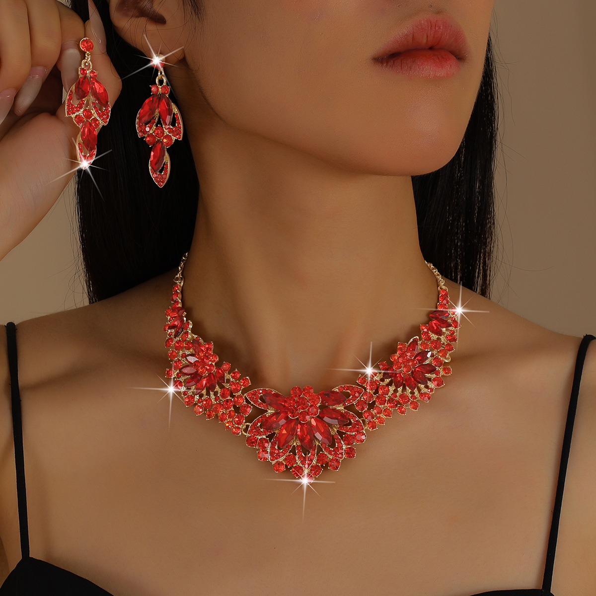 Europe and the United States cross-border direct supply wholesale alloy rhinestone suit necklace earrings two-piece wedding jewelry accessories women