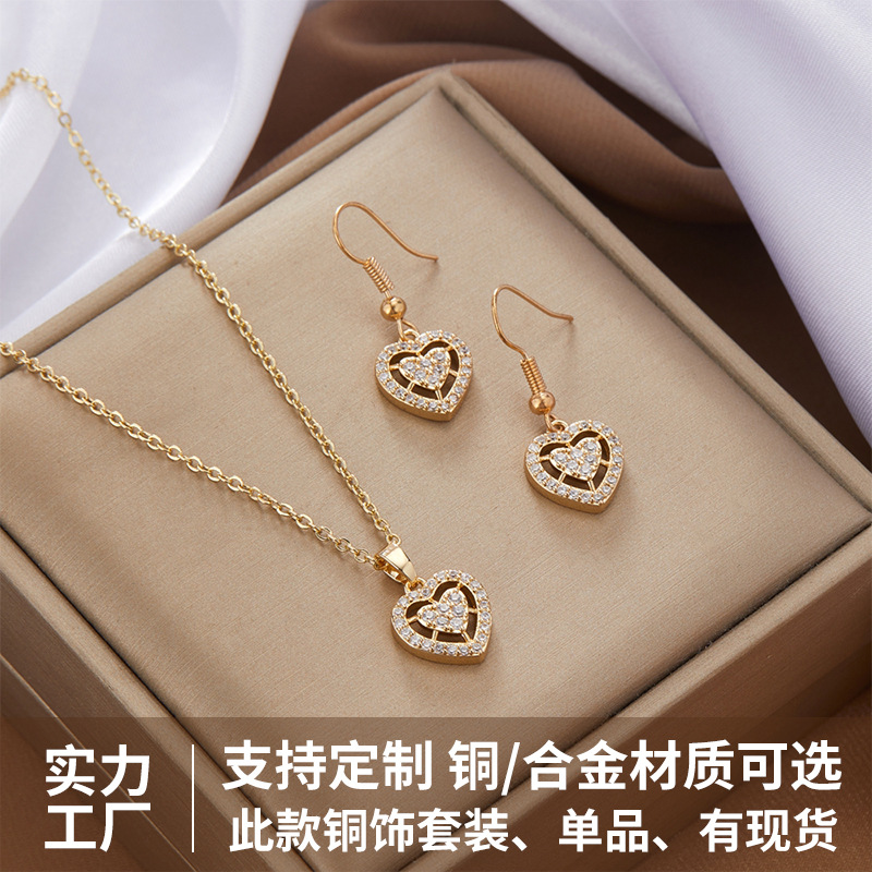 Maimi Jewelry Set Cut Out Diamond Heart Necklace Accessories Women's Jewelry High-End Earrings Accessible Luxury Earrings