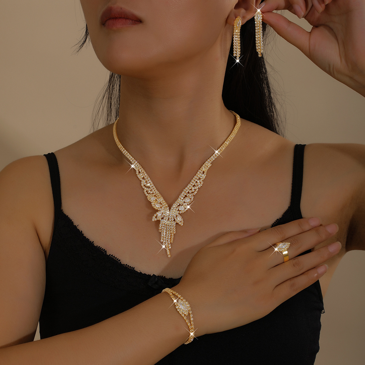 Cross-Border Autumn Luxury Jewelry Wedding Party Ladies Zircon Necklace Earrings Bracelet Ring Set Dress Dinner