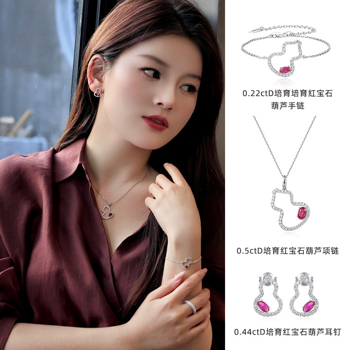 Cultivated Ruby Gourd suit Light Luxury Earrings Bracelet Necklace High-grade Elegant All-match Fortune Gift Drill