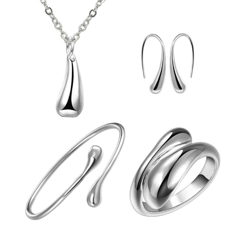 Silver-plated water droplets four-piece European and American jewelry set manufacturers spot foreign trade jewelry supply wholesale cross-border accessories