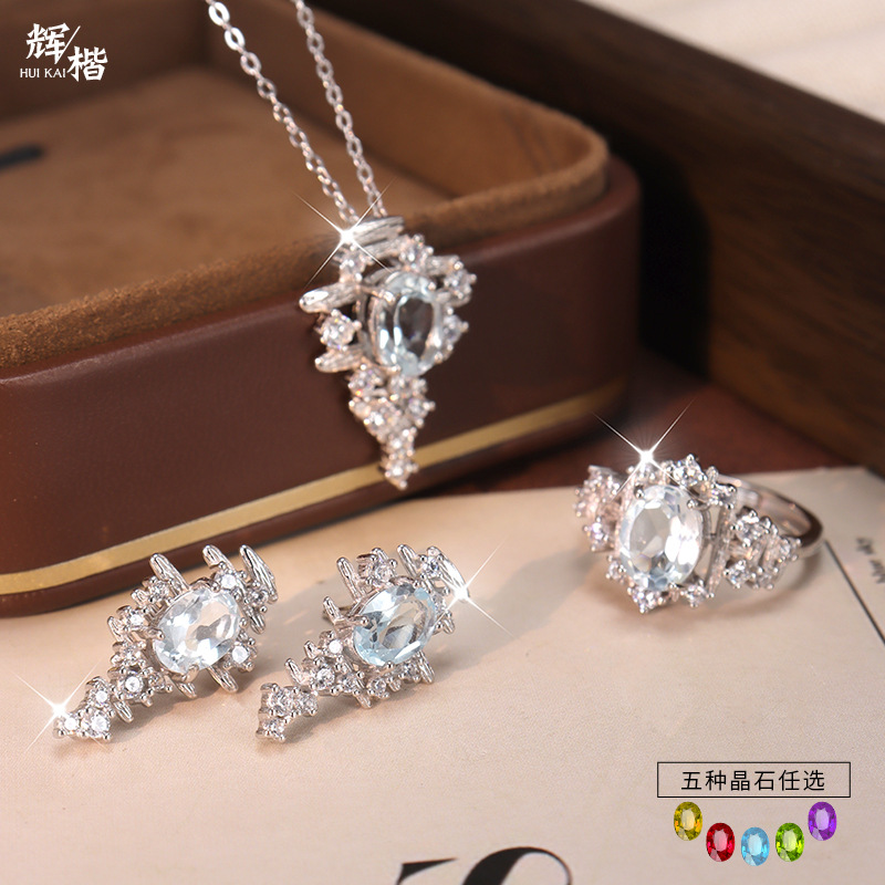 S925 Sterling Silver Jewelry Ring Three-piece Set European and American Women's Ring Pear-shaped Zircon Earrings Drop Necklace Cold Wind