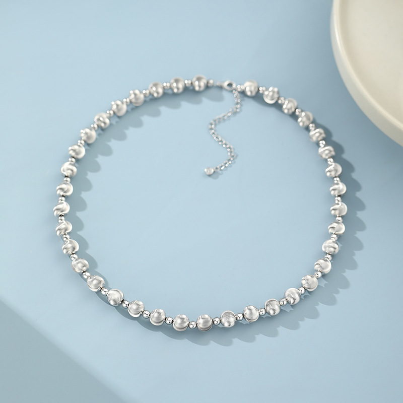 Abao S999 Pure Silver Simple Cat's Eye Silver Bead Necklace Minimalist Korean Style Clavicle Chain Set Wholesale