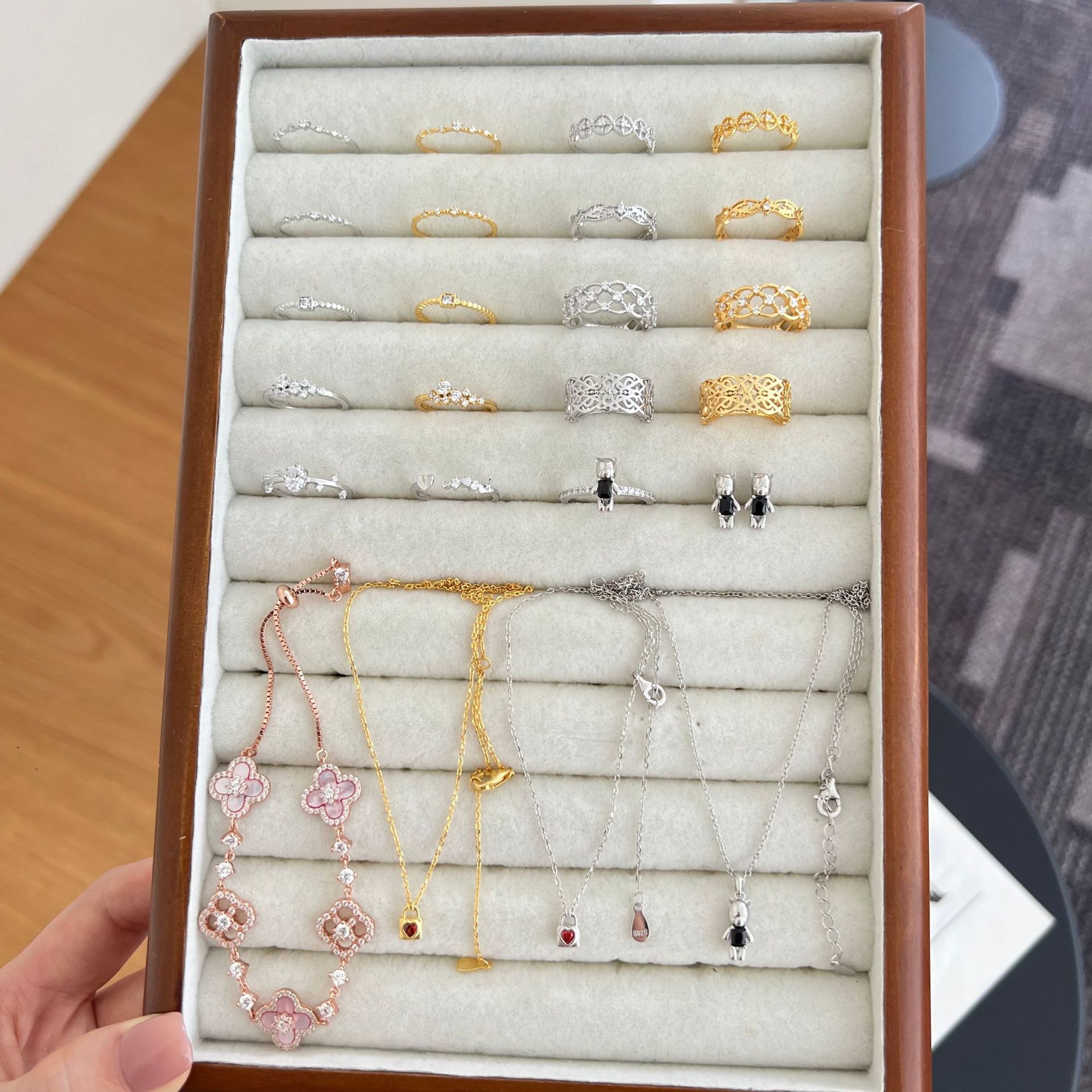 Live Broadcast Popular S925 Sterling Silver Ring Necklace Bracelet Earrings Female Bear Mesh Lace Four-Leaf Clover Women's Set