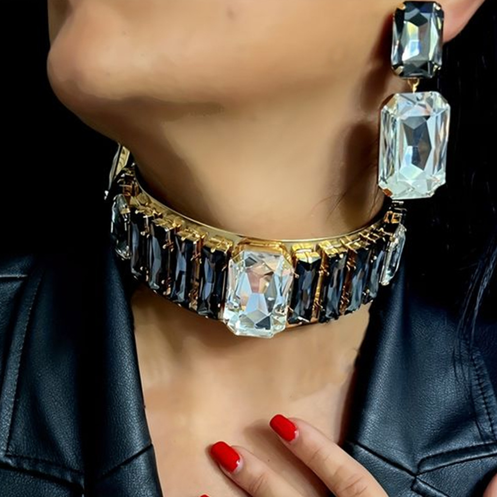 Manufacturer Direct Sales European and American Hot-Selling Women's Alloy Rhinestone Necklace Jewelry Set Bridal Wedding Banquet Accessories