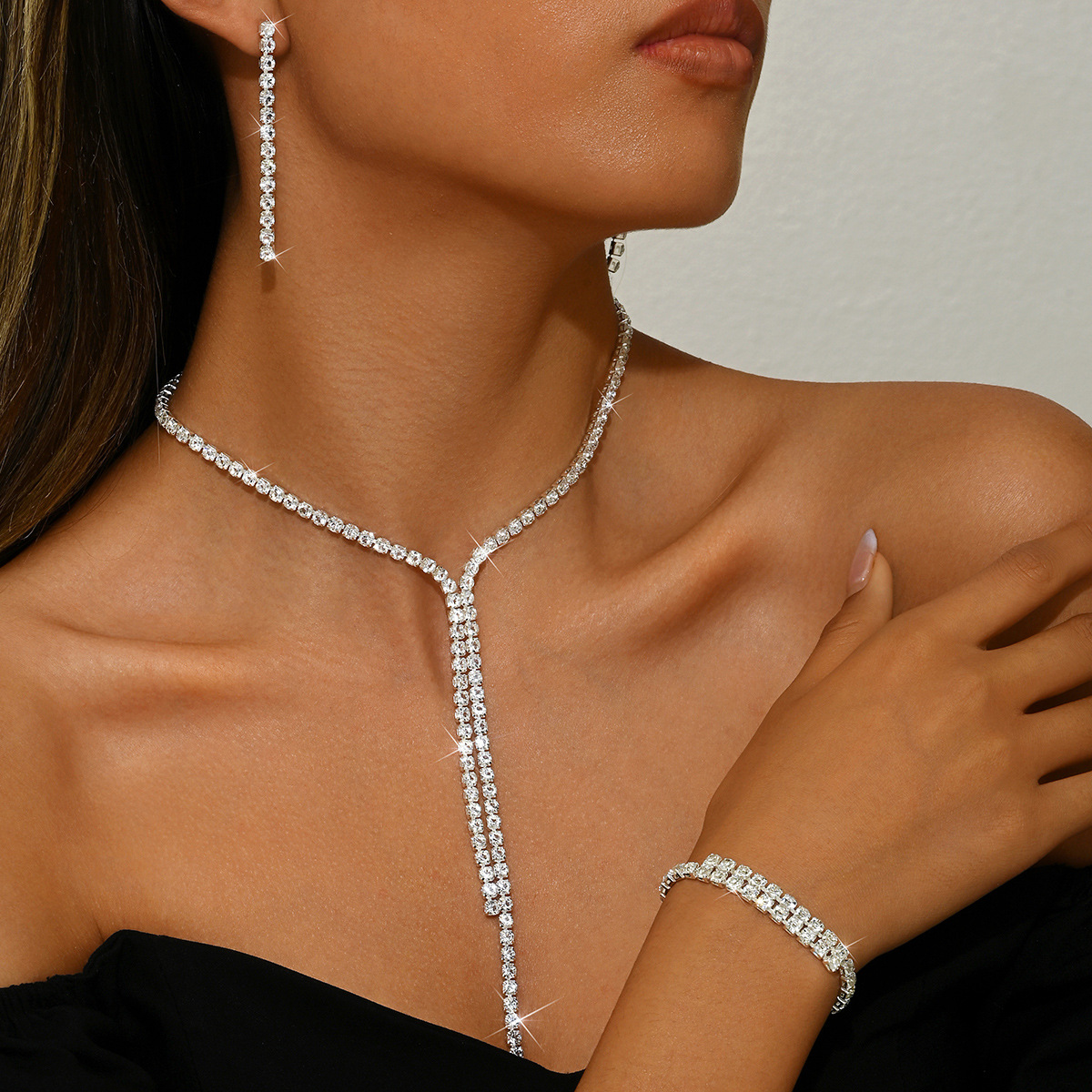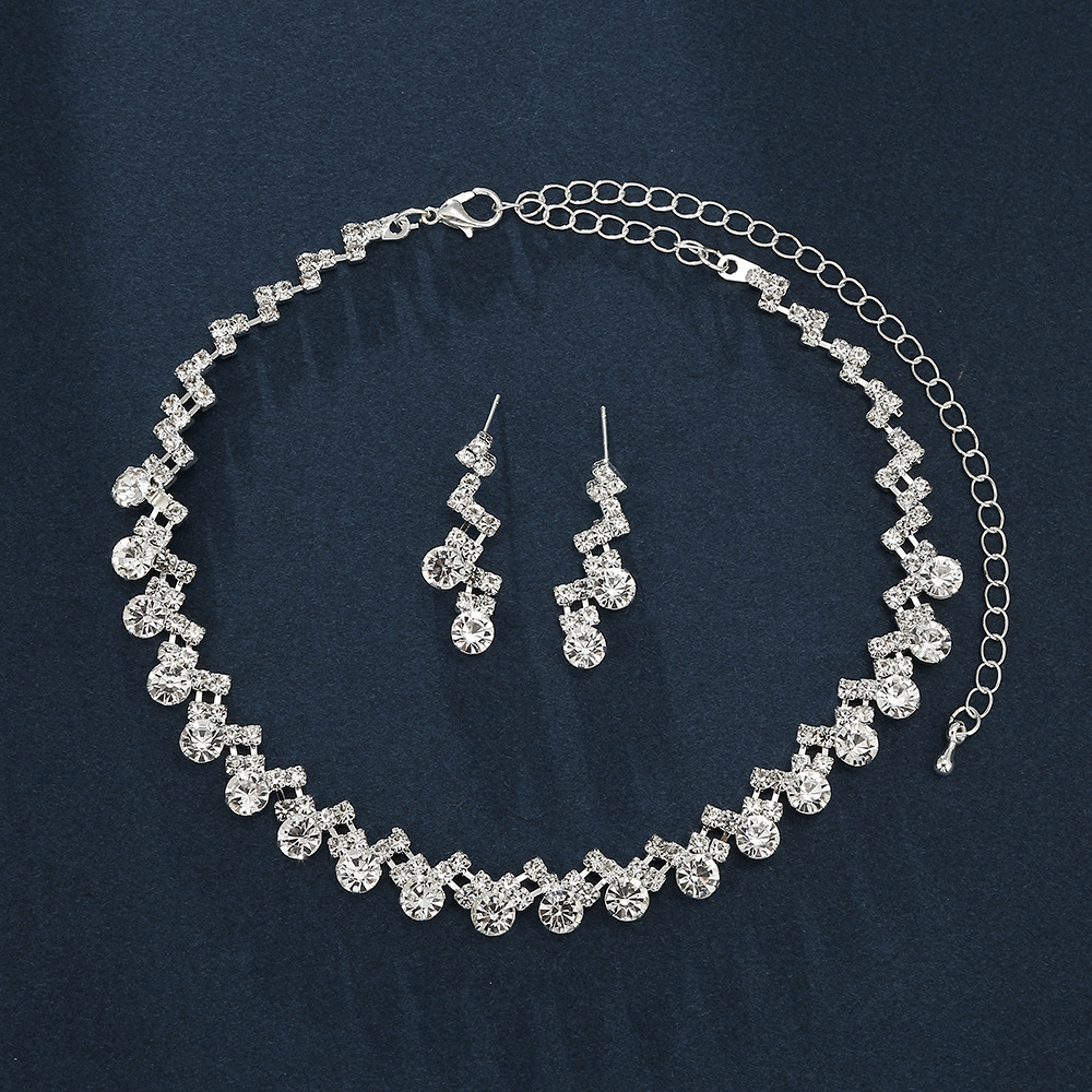 Fashion Simple Rhinestone Jewelry suit Necklace Earrings Bracelet Cross-border Hot Selling Women's Wedding Jewelry