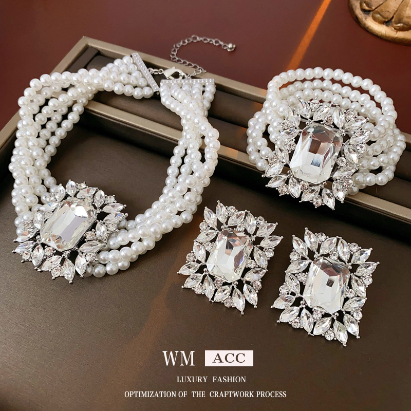 European and American fashion women's jewelry earrings necklace two-piece bride pearl jewelry suit dress dinner accessories wholesale