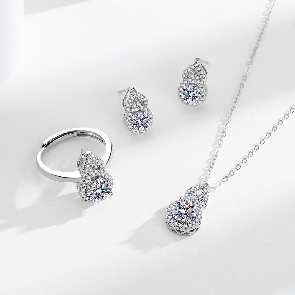 Senior GRA Moissanite Three-piece Combination suit Ring Necklace Pendant Earrings 925 Sterling Silver Foreign Trade Explosions Supply