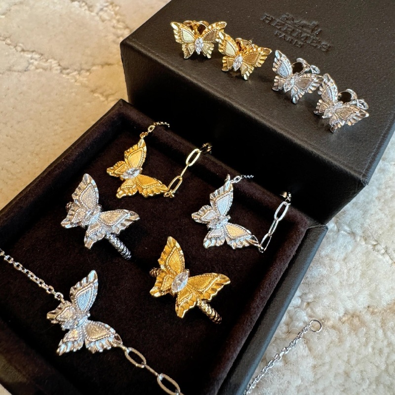 Douyin Live Broadcast Niche Design Super Fairy Hollow Flashing Butterfly Earrings Micro-inlaid Full Diamond Pendant Ring suit Women