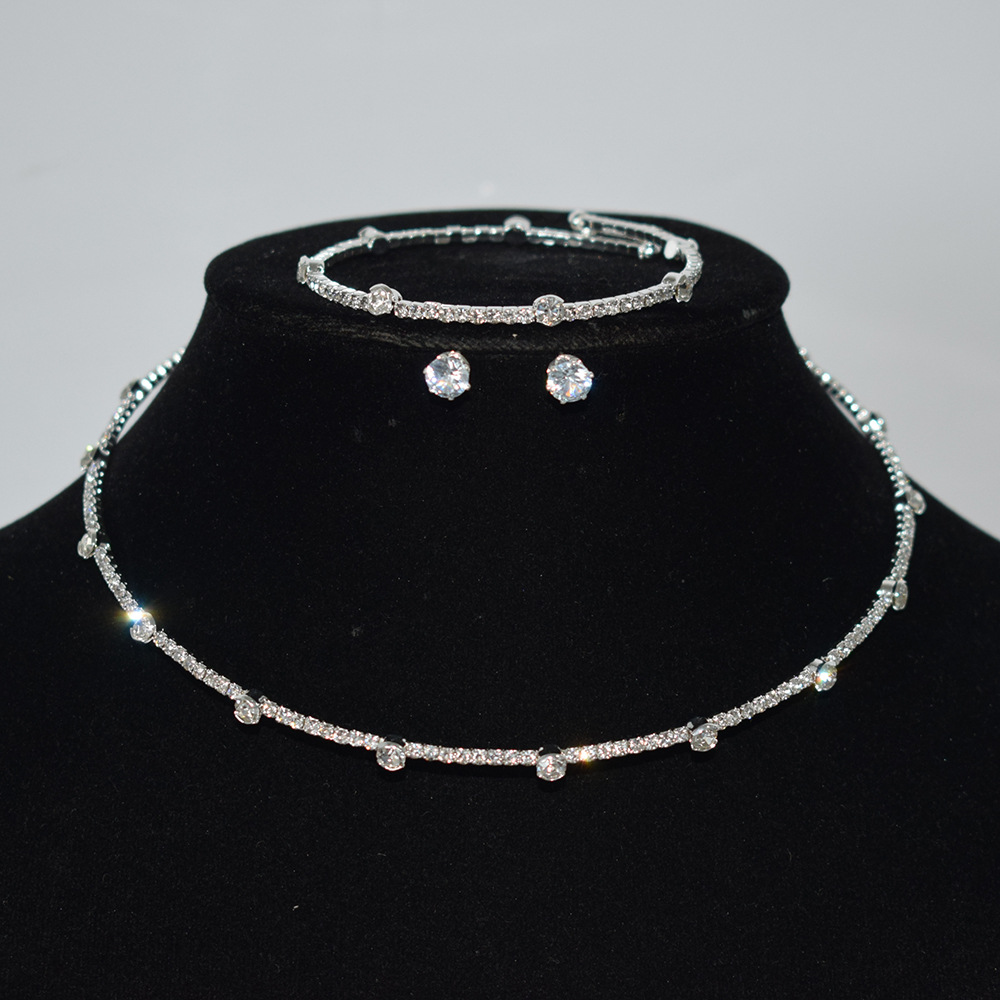 Simple 1 row rhinestone zircon pearl collar bracelet stud earrings suit bridal wedding dress accessories clavicle necklace