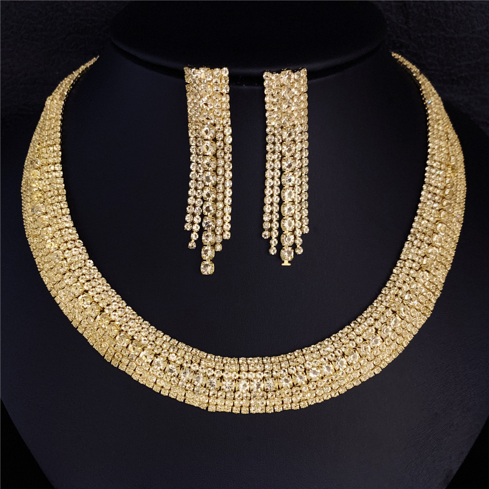 Middle East Bride Jewelry European and American Gold Plated Rhinestone Necklace New Wedding Wedding Dress Accessories Jewelry Necklace Set