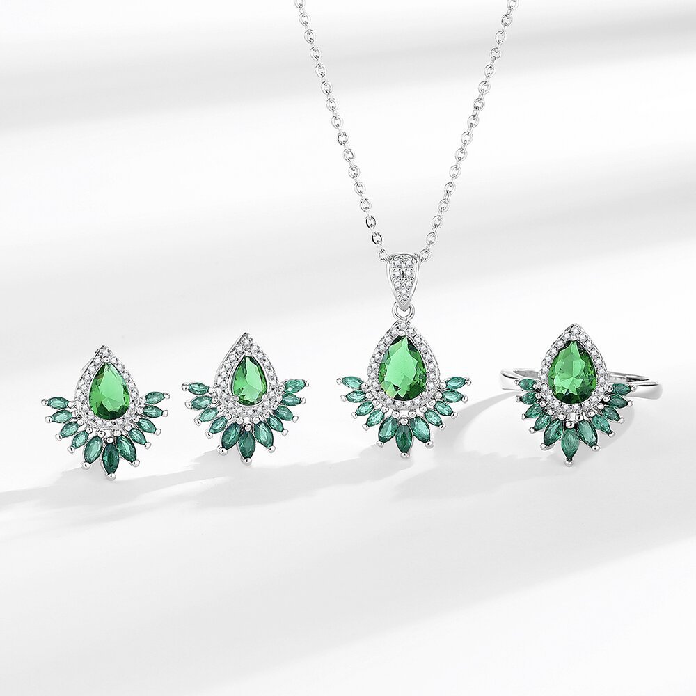 Cross-border Live Broadcast New Product Emerald Tourmaline Full Diamond Necklace Women's High-end Jewelry Ring Earrings Jewelry suit
