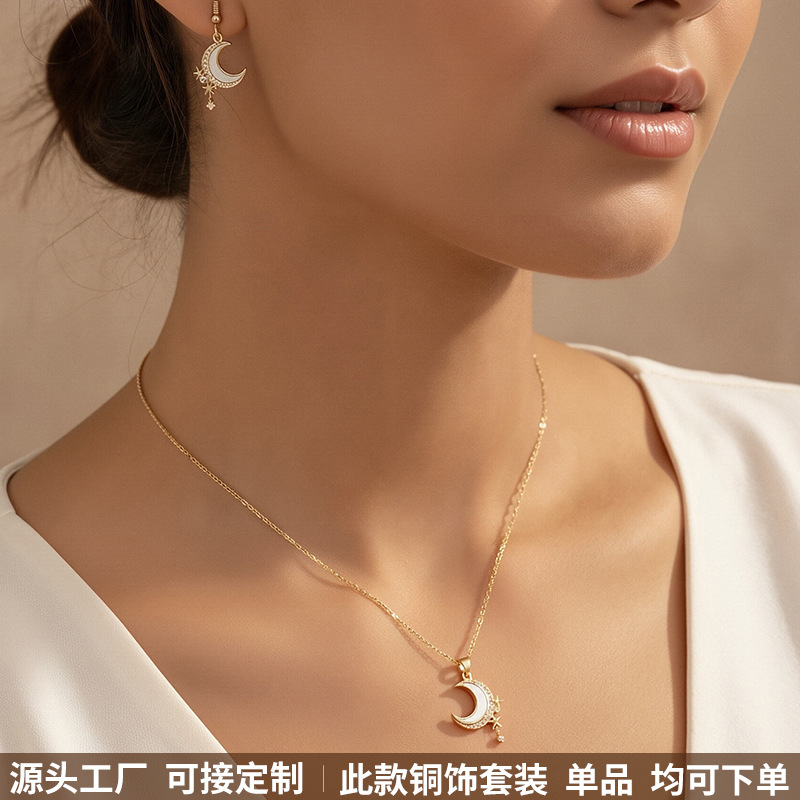 Maimi Copper Zirconium Jewelry Set Casual Micro-Encrusted Zircon Star Moon Necklace Jewelry Women's High-End Earrings