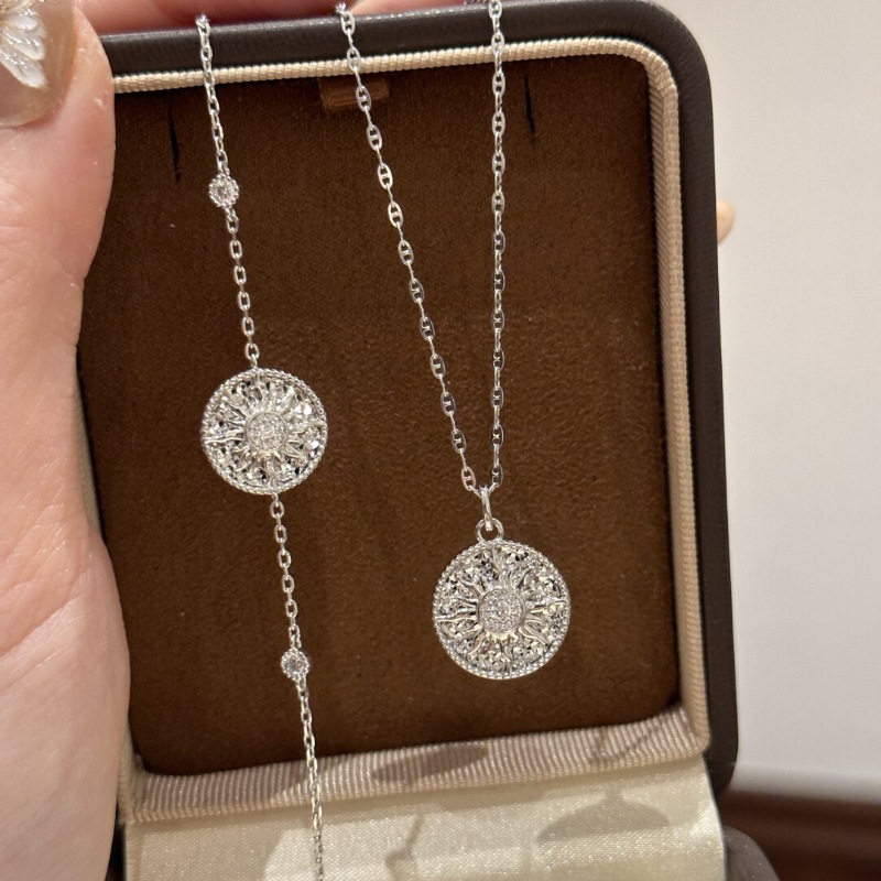 French-Style Light Luxury Retro High-End Crushed Ice Sunflower Bracelet Necklace Micro-Inlaid Zircon Compass Fashion Temperament Set