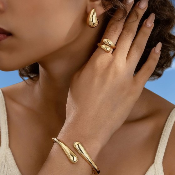 European and American Cross-Border Glossy Water Drop Irregular Design Bracelet Ring Earrings Women's Daily Wear Simple Jewelry Set