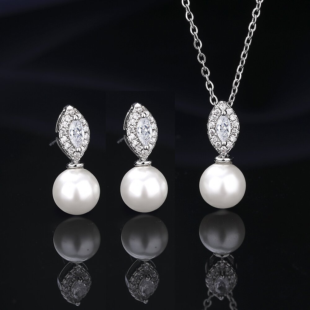 European and American Cross-Border Hot Selling Fashion Pearl Earrings Necklace Set Ladies Temperament Bridal Wedding Jewelry Set Wholesale