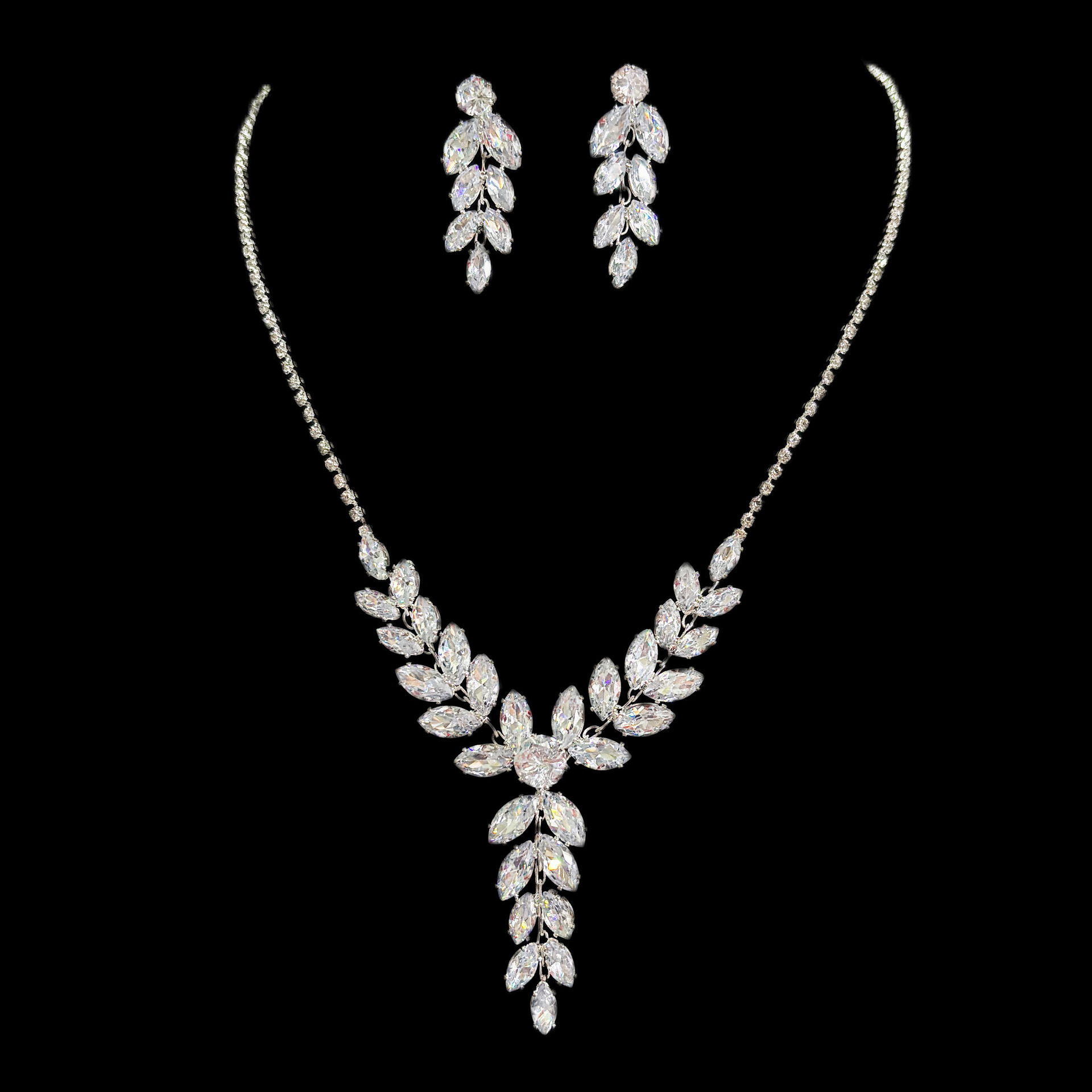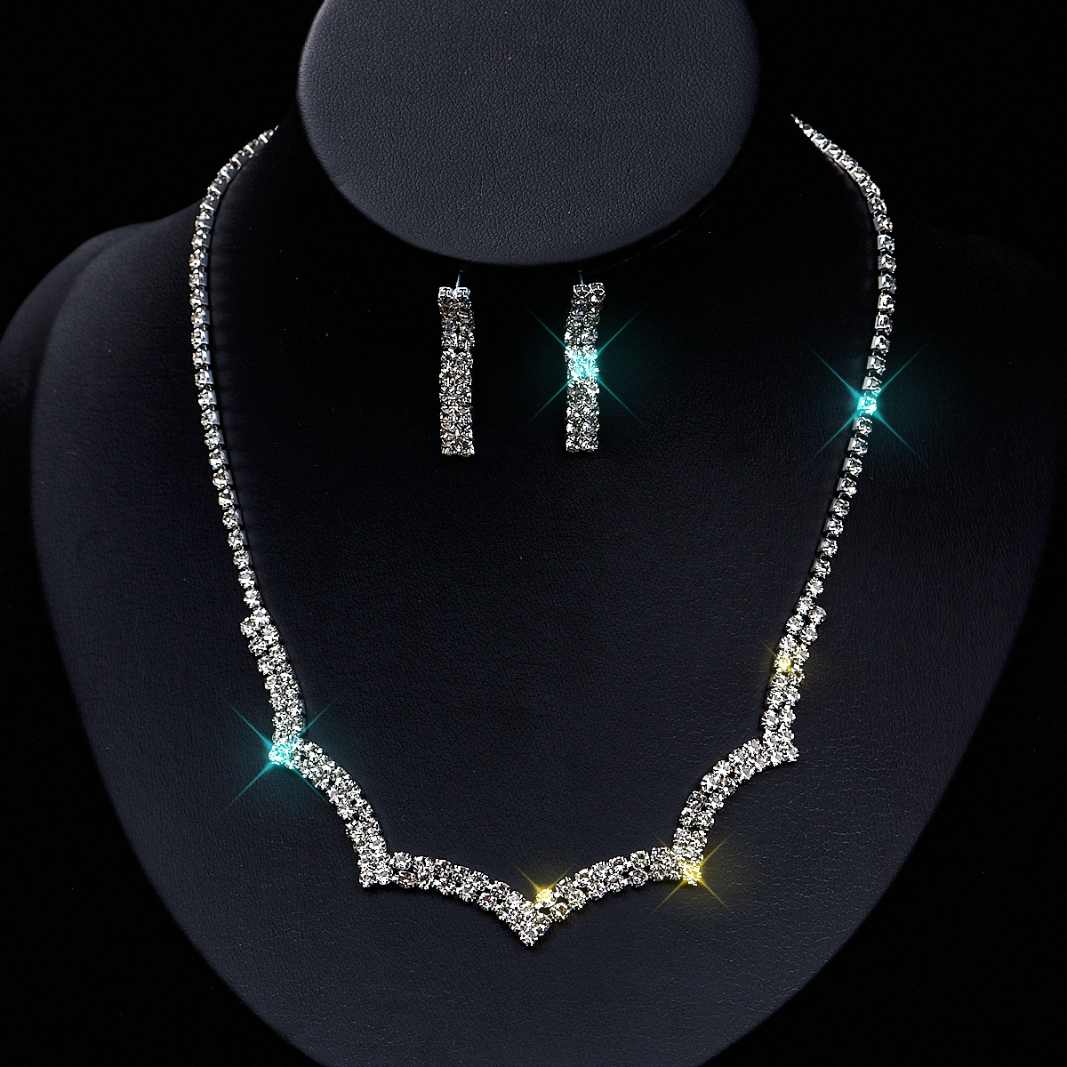 European and American Fashion Colored Diamond Drop-Shaped Super Flash Elegant Set Chain Earrings Necklace Exaggerated Two-Piece Bridal Jewelry Wholesale