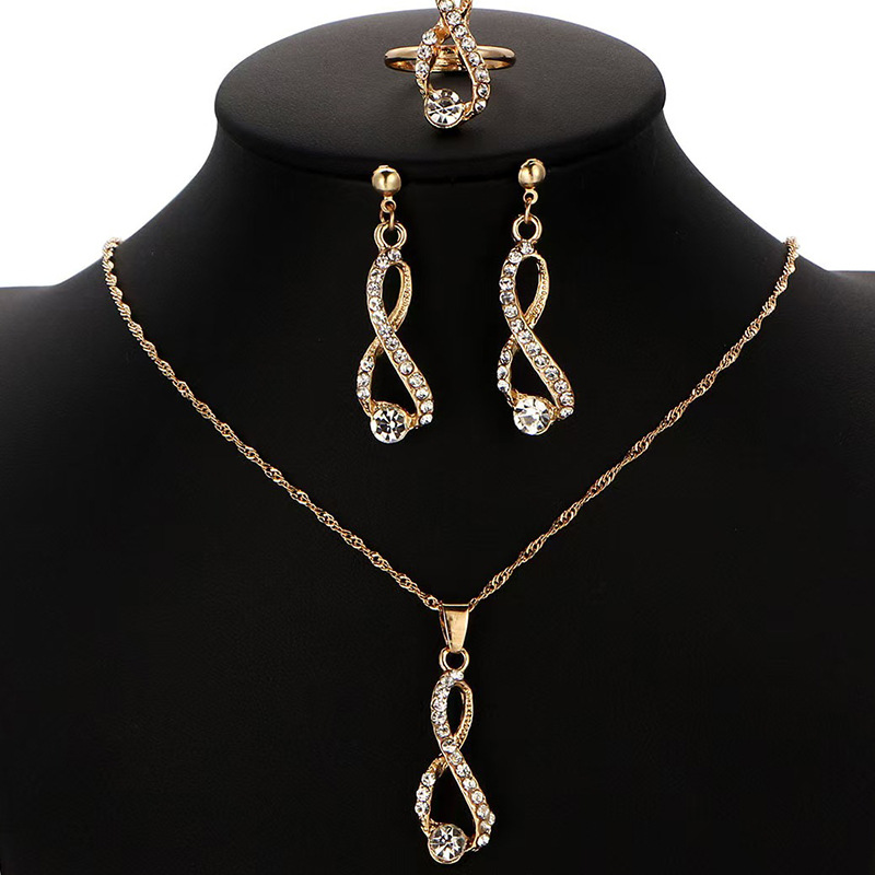 2025 new creative simple European and American fashion full diamond gold diamond suit 8 word necklace earrings jewelry suit in stock