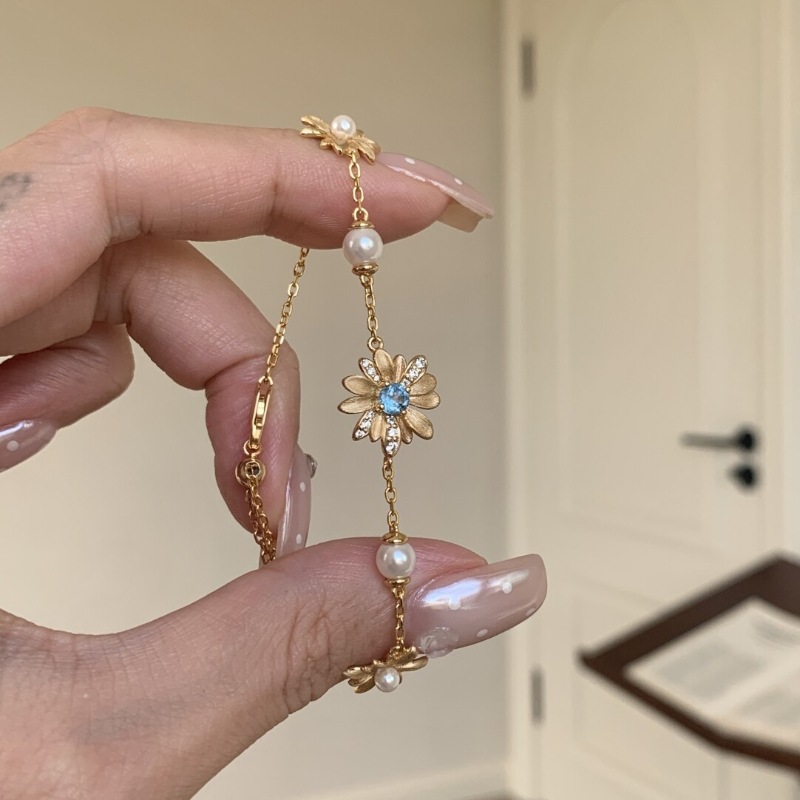 Vintage Chinese-Style Paraiba Daisy Bracelet Necklace Set with Diamonds and Pearls Exquisite Design