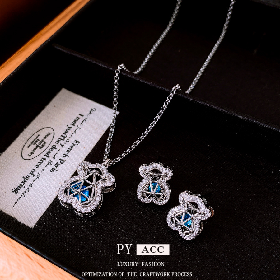 Titanium Steel Zircon Hollow Bear Pendant Earrings Necklace Light Luxury High-End Clavicle Chain Design Jewelry Set for Women