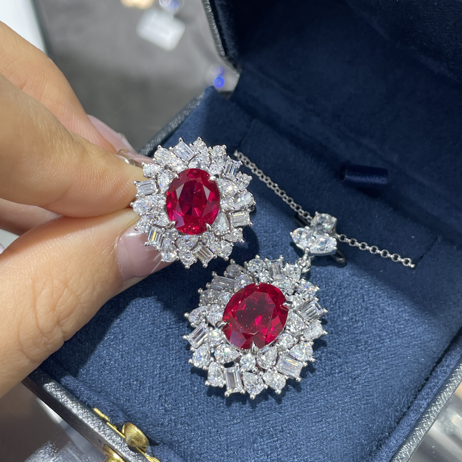 Cultured Ruby Earrings, Pigeon Blood Ruby High-End Niche Necklace, New Retro High-End Light Luxury Set