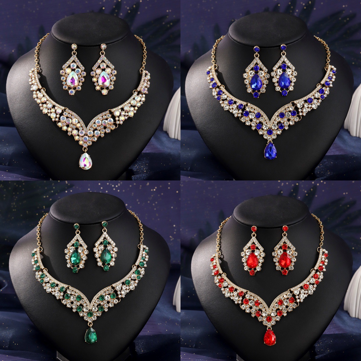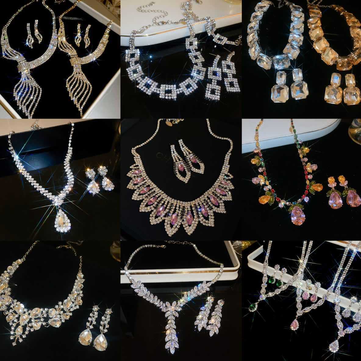 European and American Best-Selling Luxury Colored Diamond Necklace Set Dinner Party Jewelry Two-Piece Set Retro Classic Bridal Set Chain