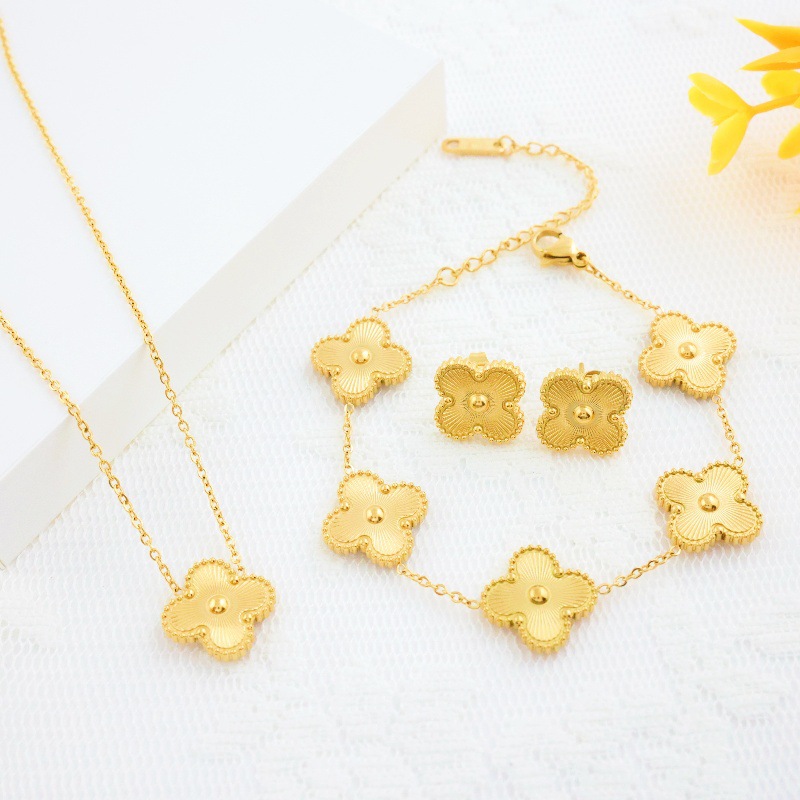 Fashion high quality double-sided clover necklace stud earrings bracelet suit lucky stainless steel Five-Flower jewelry cross-border