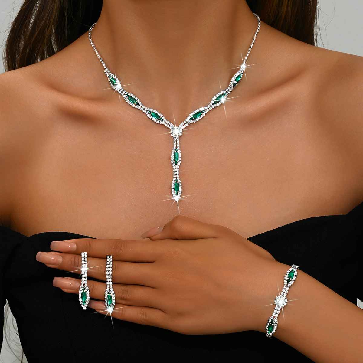 Diamond-encrusted emerald square earrings necklace suit elegant temperament clavicle chain fashion light luxury new jewelry wholesale