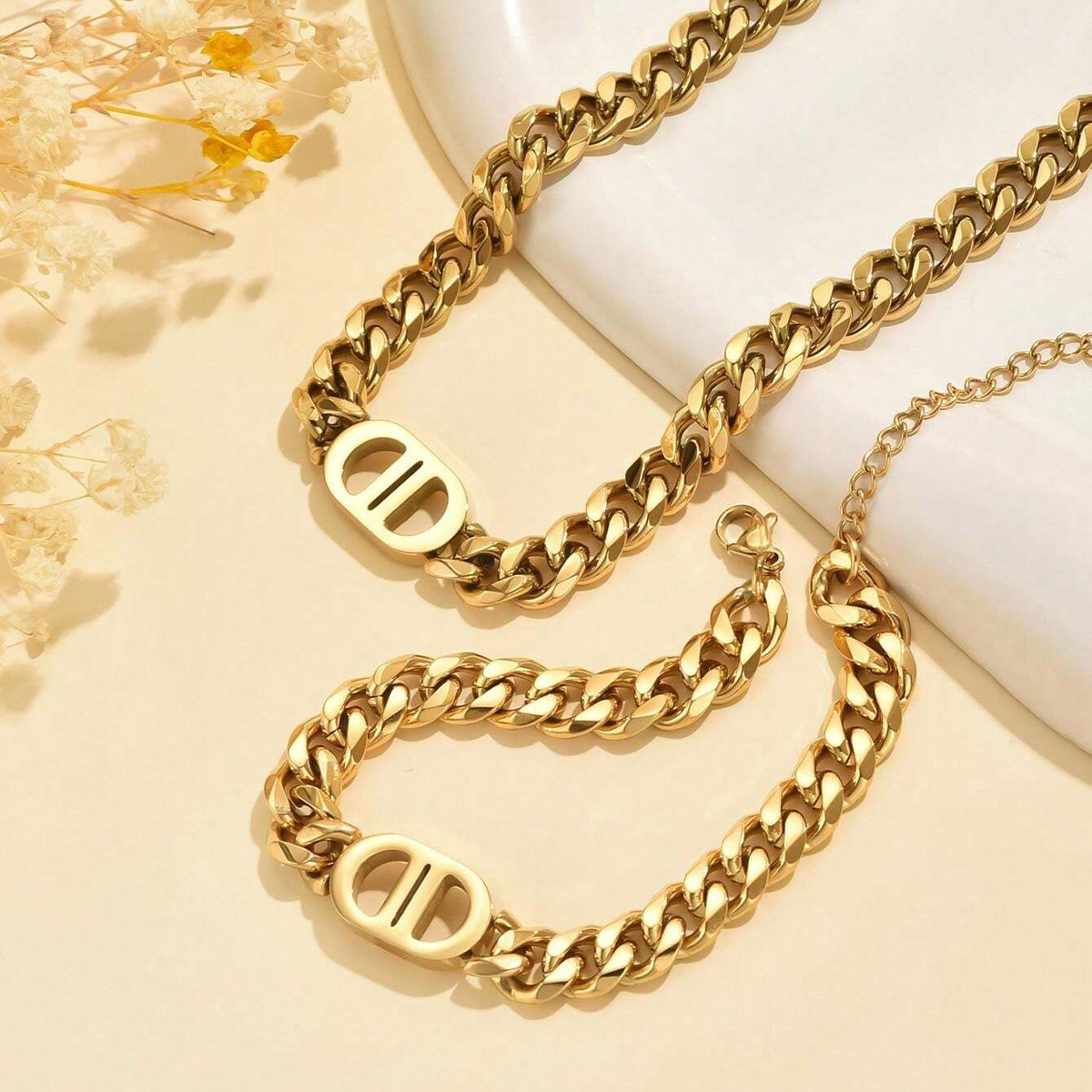 AliExpress foreign trade new European and American gold thick chain necklace design fashion net red clavicle chain bracelet suit