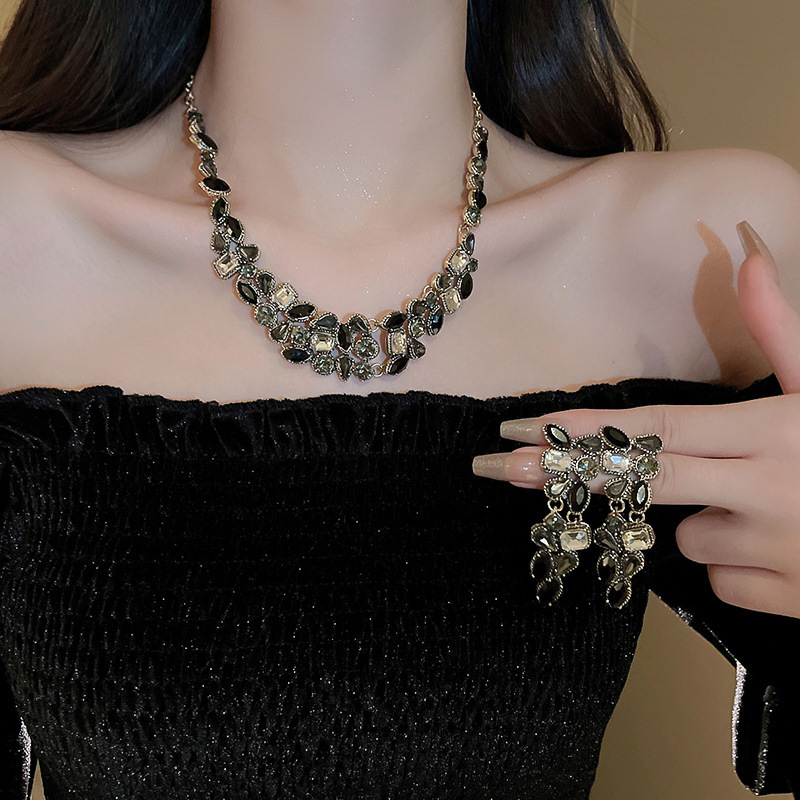 European and American Creative New Jewelry Diamond-encrusted Luxury High-end Necklace Earrings Light Luxury Necklace Three-piece Set Wholesale