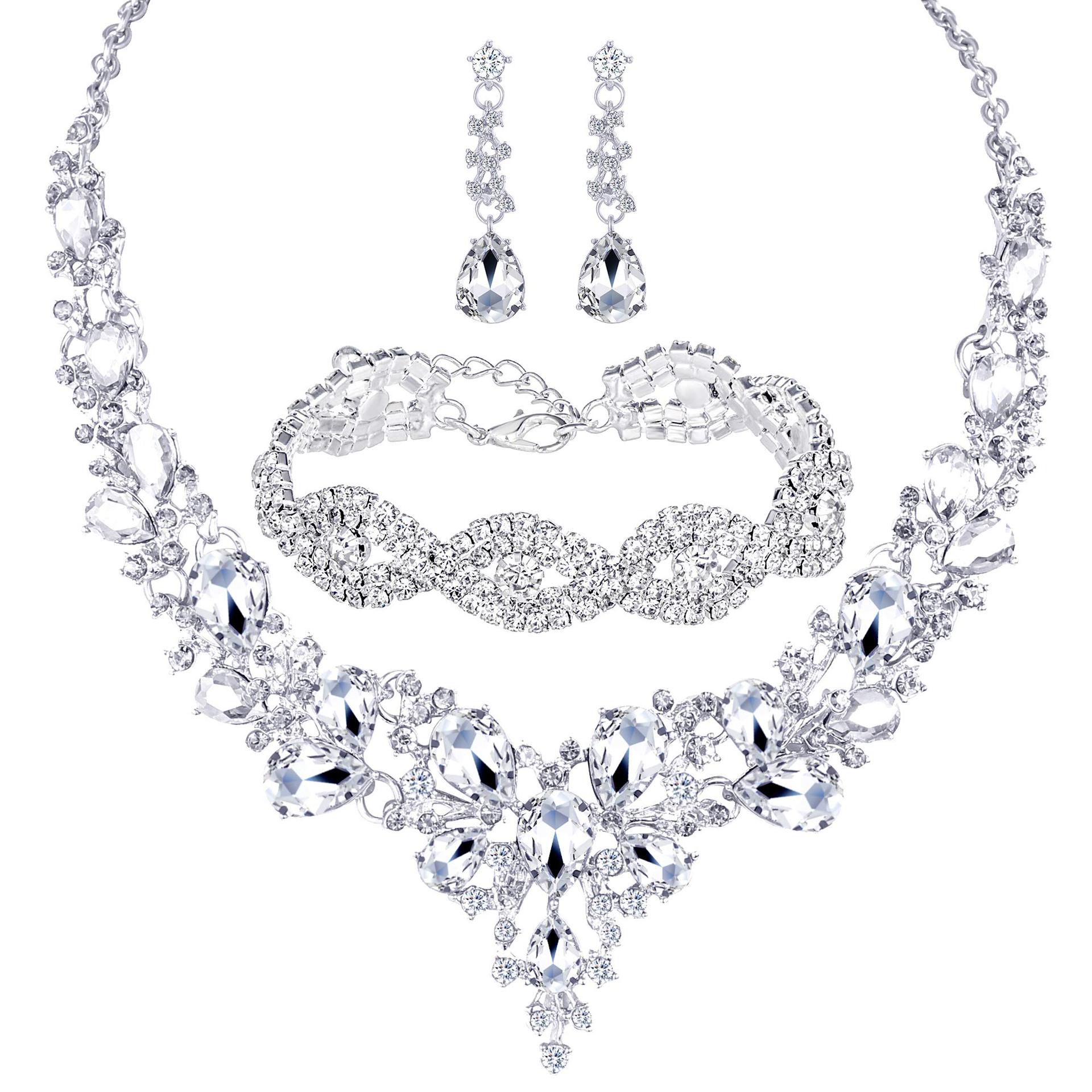 Cross-border Amazon European and American Flower Necklace Earrings Bracelet Three-piece Set All-match Bridal Jewelry Accessories Wedding Jewelry