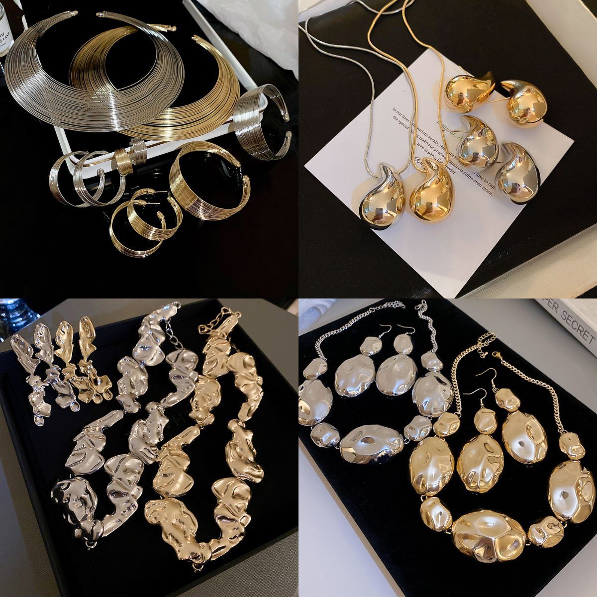 European and American Fashion Ins Minimalist Metal Wind Water Drop Pendant Necklace Women's Niche High-end Temperament Necklace Four-piece Set