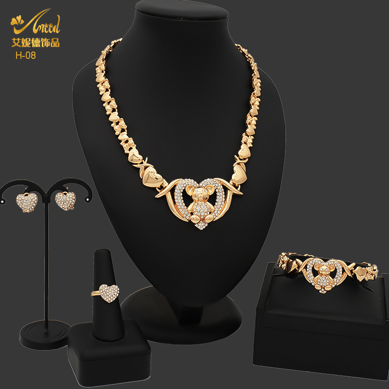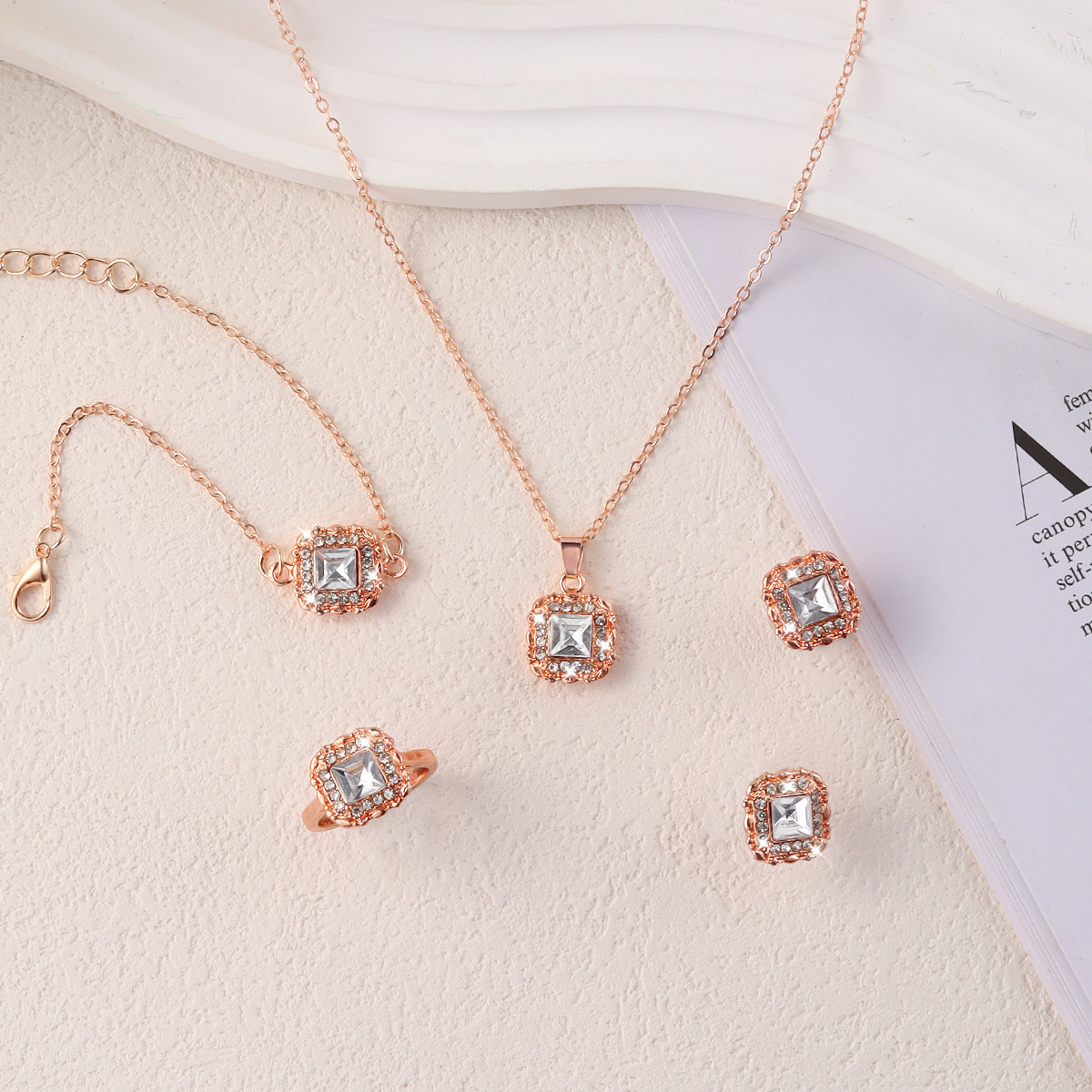 New four-piece luxury classic ladies jewelry suit zinc alloy diamond necklace bracelet earrings ring suit