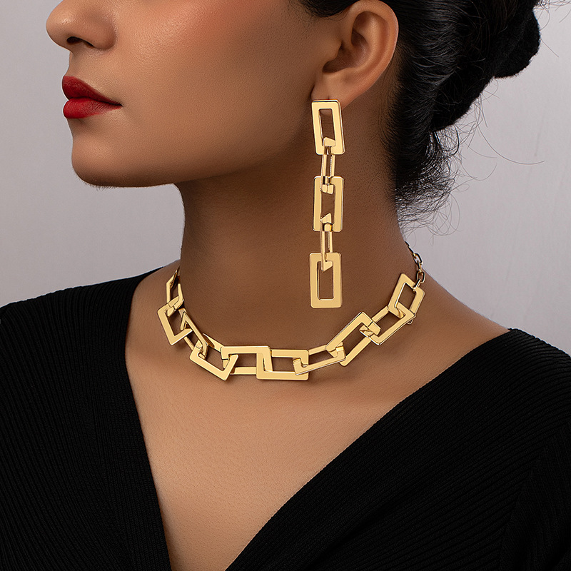 Cross-border European and American Hot Selling Fashion Street Beat Chain Earrings Necklace suit Women's Distinctive Hip-hop Winter Collarbone Chain Earrings