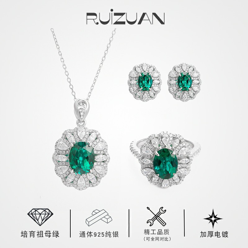 Little Red Riding Book Best Selling 2 karat Cultivated Emerald suit Oval Ring Earring Pendant Gift for Mother