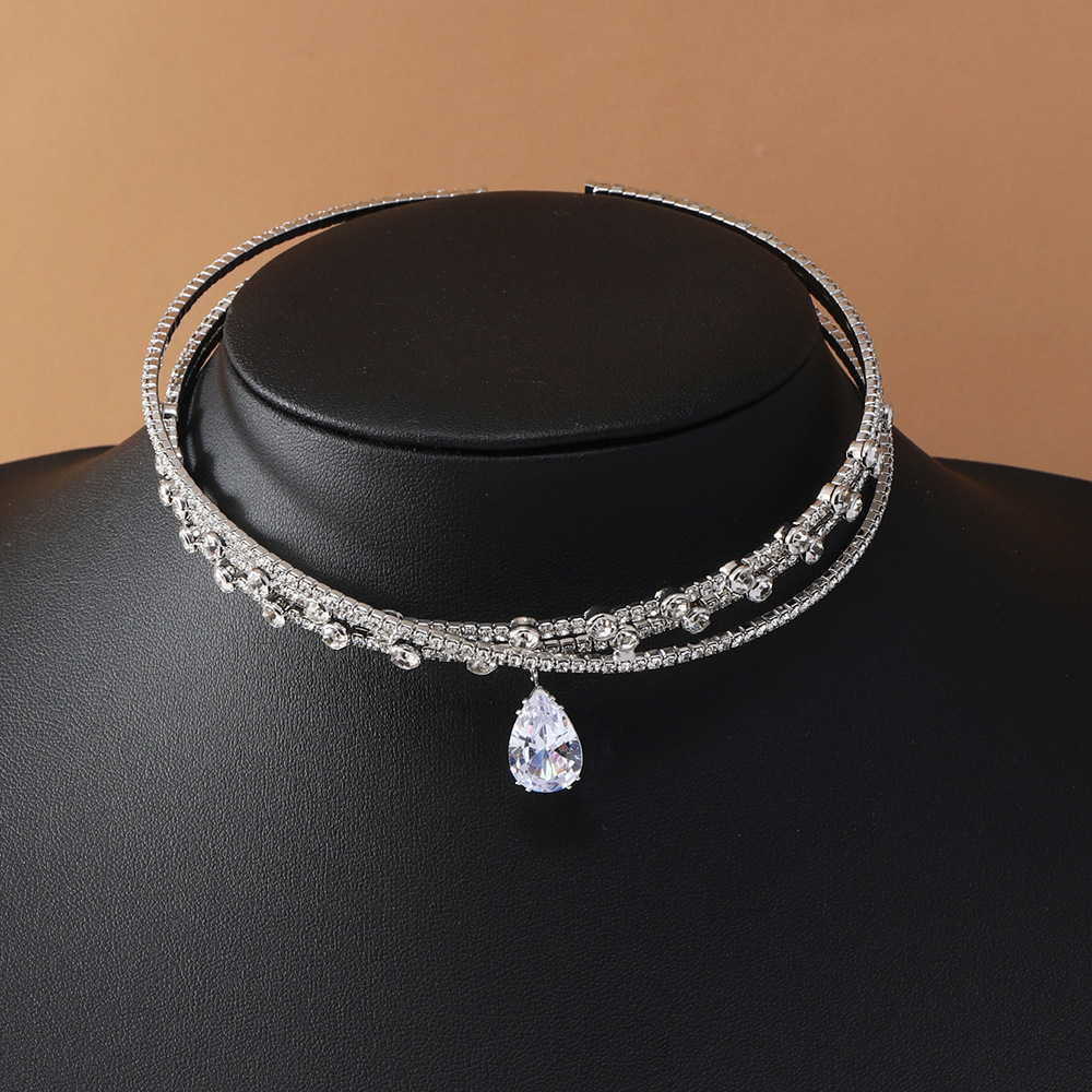 Simple Zircon Water Drop Headband, Large Gemstone Jewelry Choker, Rhinestone Pendant, Dual-Wear Cross Clavicle Necklace
