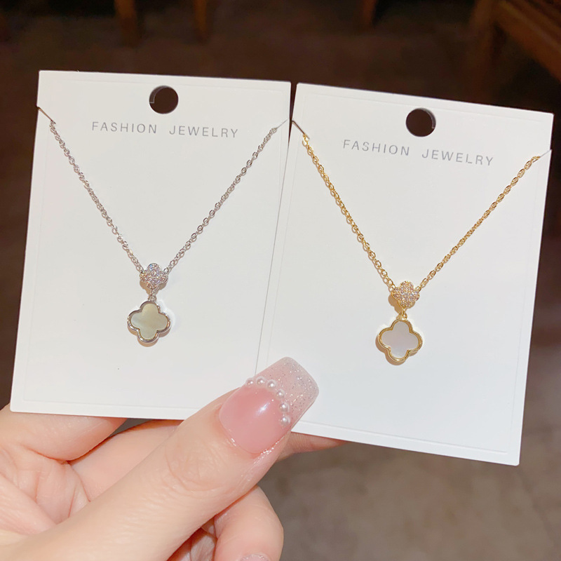 Micro-inlaid shell four-leaf flower necklace women's niche design sense light luxury all-match clavicle chain simple cold wind neck chain