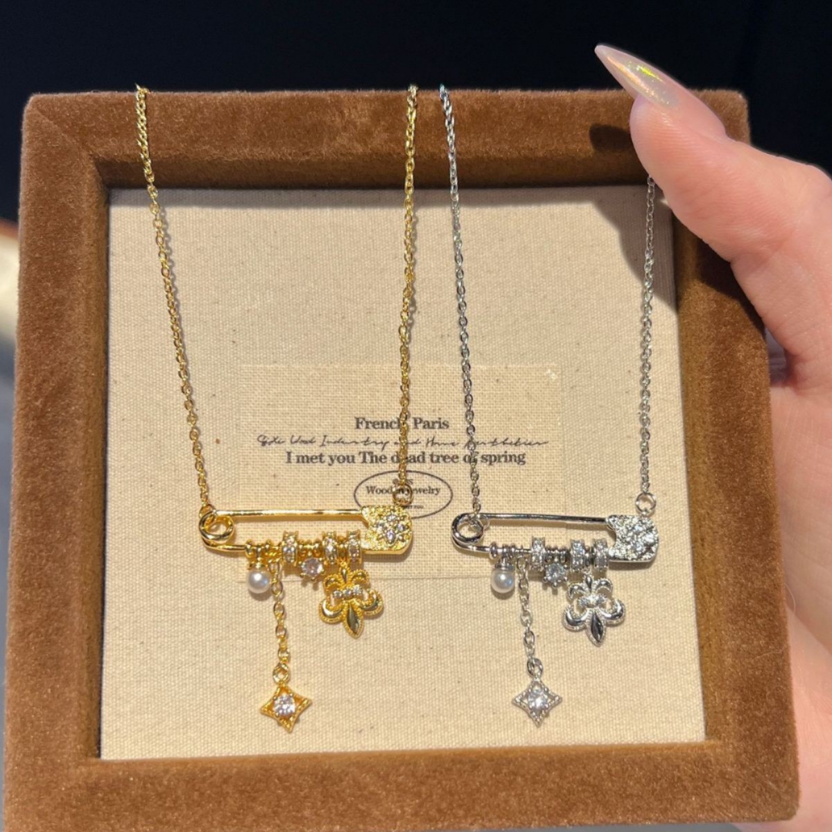 Brushed Iris Starburst Pearl Pin Necklace Women's Accessible Luxury Niche High-End Design Pendant Accessories Clavicle Chain