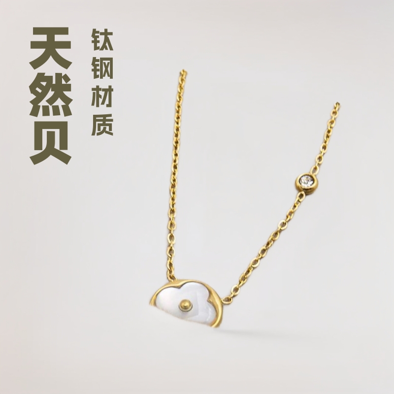 Donkey Four-leaf Flower Necklace Titanium Steel Color-free Simple Fashion Natural Shellfish Round Four-leaf Clover Old Flower Necklace