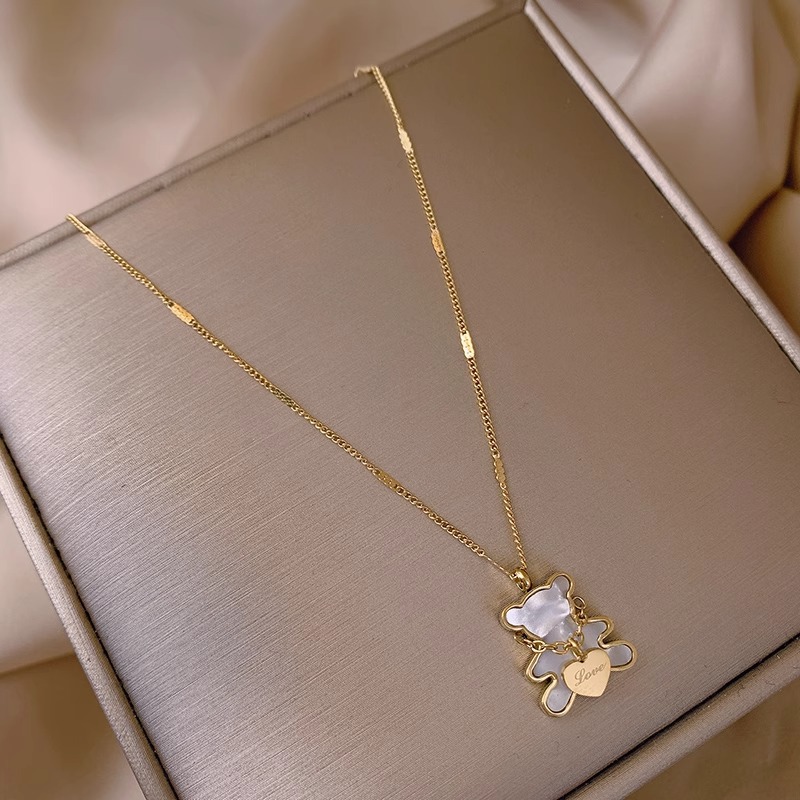 2023 New Bear Love Pendant Necklace Women's Ins Decorative Simple Cold Fashion Clavicle Chain Jewelry