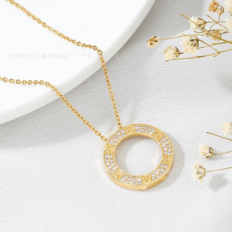 High-Quality Kajia Classic Round Cake Necklace for Women, Accessible Luxury, Fashionable Elegant, Clavicle Chain Full of Diamonds, Titanium Steel 18K Gold Electroplating