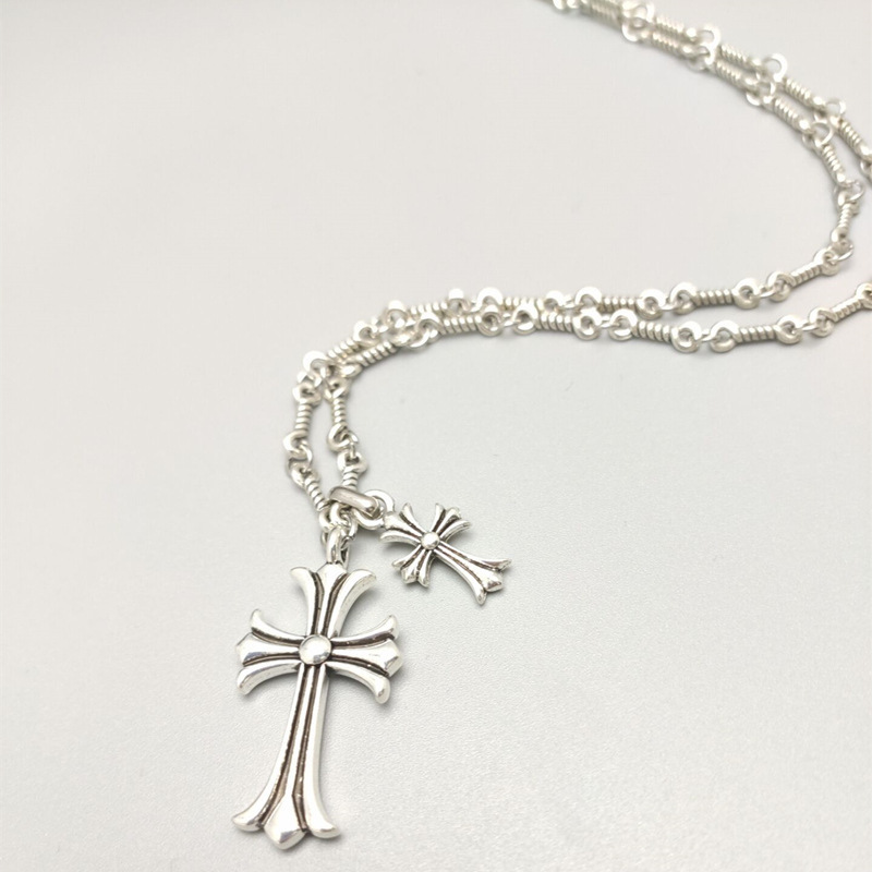 Thai Silver Croix Star Necklace Retro Silver Elegant Double Cross Pendant Couple's Korean Style Pendant Pendant Necklace