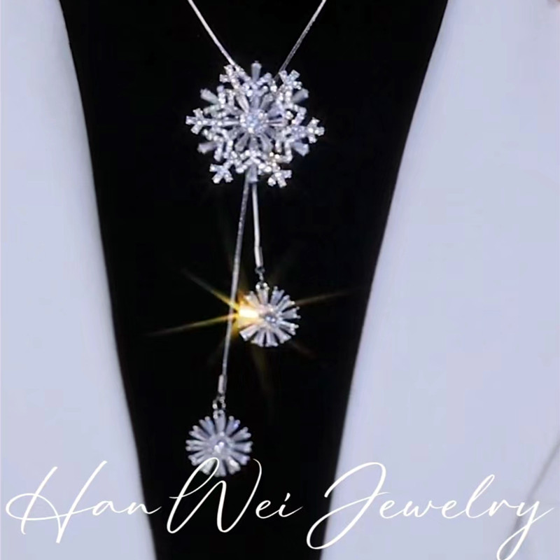 Exquisite Rotating Snowflake Platinum-Style Pull-Out Long Sweater Chain, Elegant and Luxurious Versatile Necklace, Stylish Women's Pendant