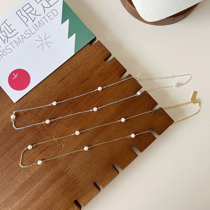 Kaset Korean-style S925 Silver High-grade Round Bead Rice Grain Elegant Collarbone Fashion Distinctive Necklace Necklace for Women
