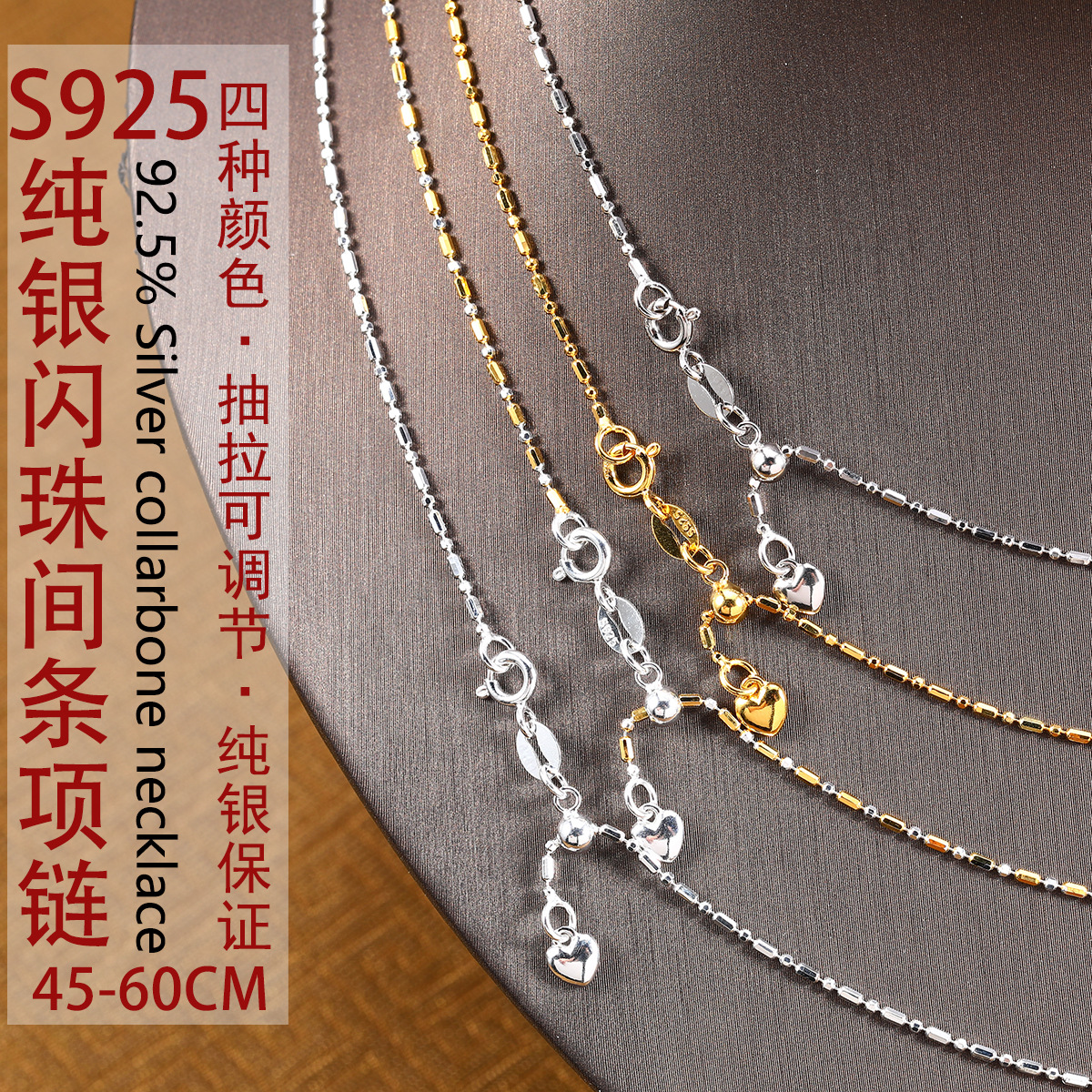 Sterling Silver Necklace S925 Sterling Silver Bead Chain Rice Bead Necklace Flash Bead Chain Women's Clavicle Chain Diamond Chain Gold-Plated Candy Necklace