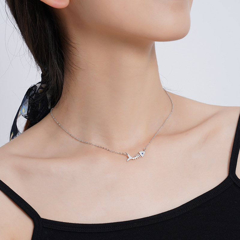 Diamond-encrusted Fishbone (fish you meet) Pendant Internet-famous Necklace Female Niche ins Cold Style Simple Elegant Clavicle Chain