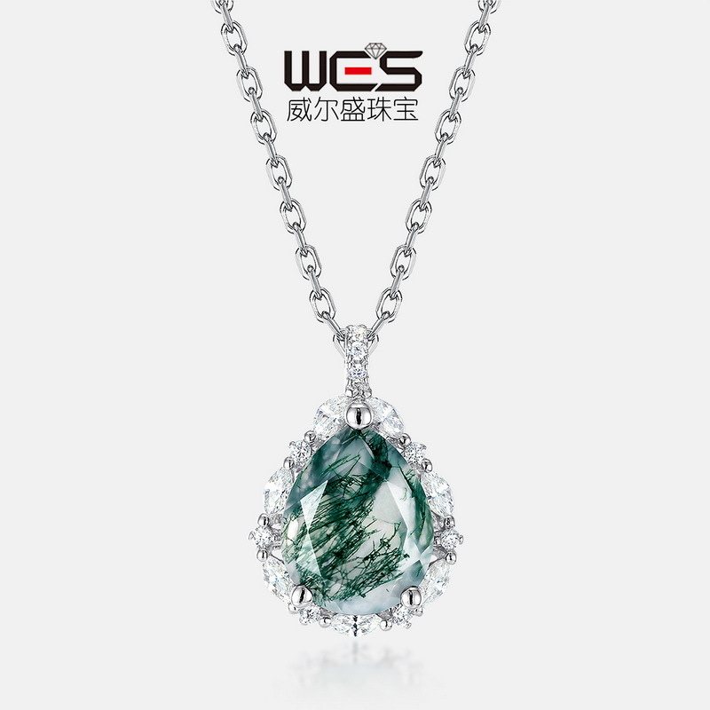 Cross-border new S925 silver green moss pendant female clavicle necklace aquatic agate pendant fashion noble European and American style