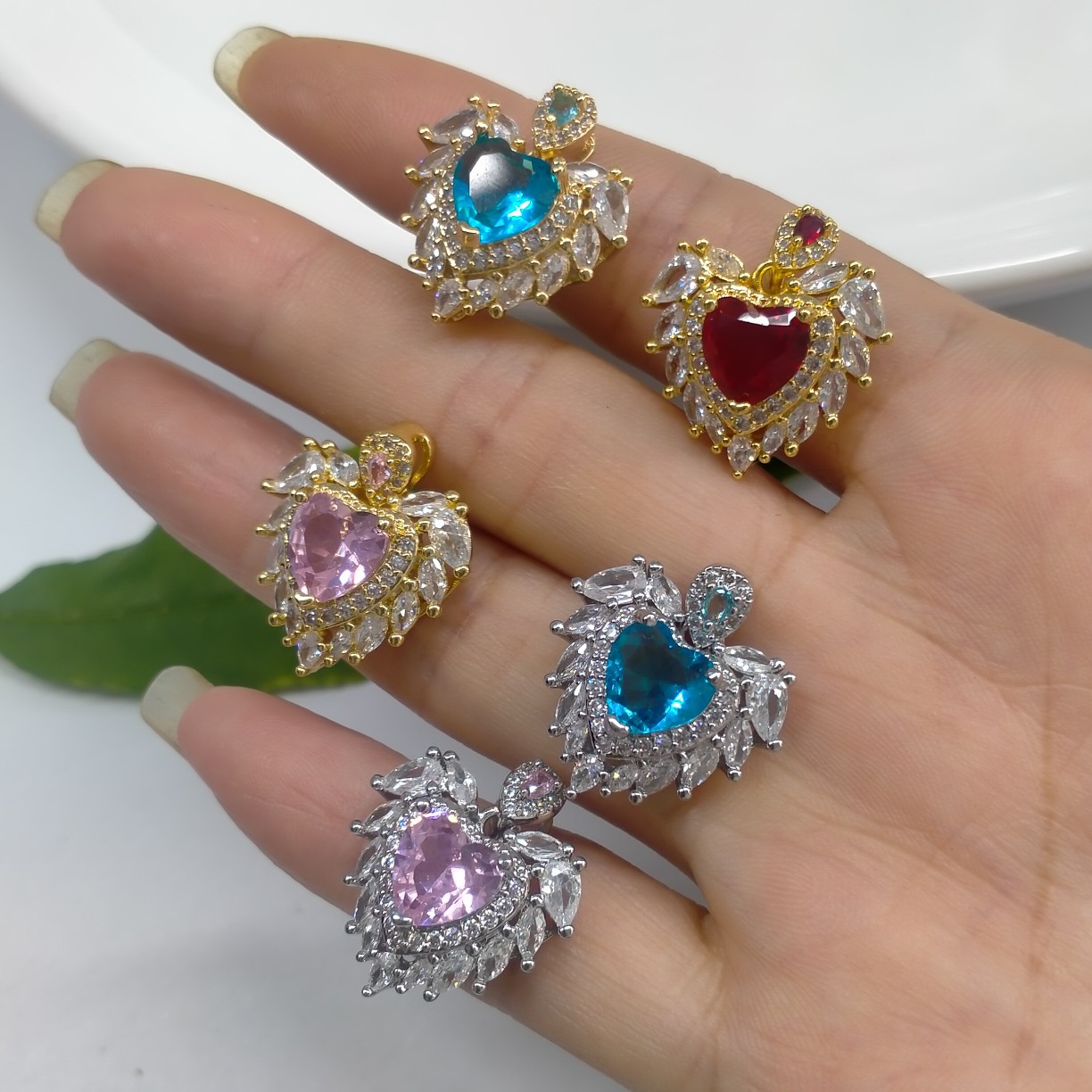 New Tiktok Hot Selling Angel Wings Pendant Inlaid with Colorful Zircon Love Red Blue White Powder Feather Pendant.