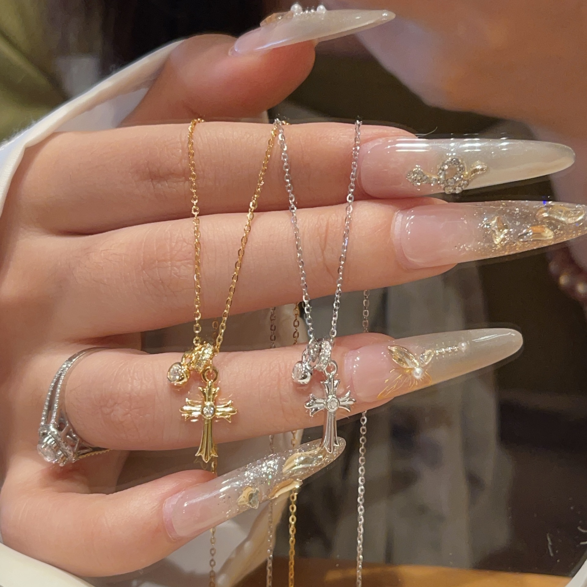 S925 Sterling Silver Running Ring Cross Pendant Necklace Women's Spring and Summer New Style Accessible Luxury High-End Daily Versatile